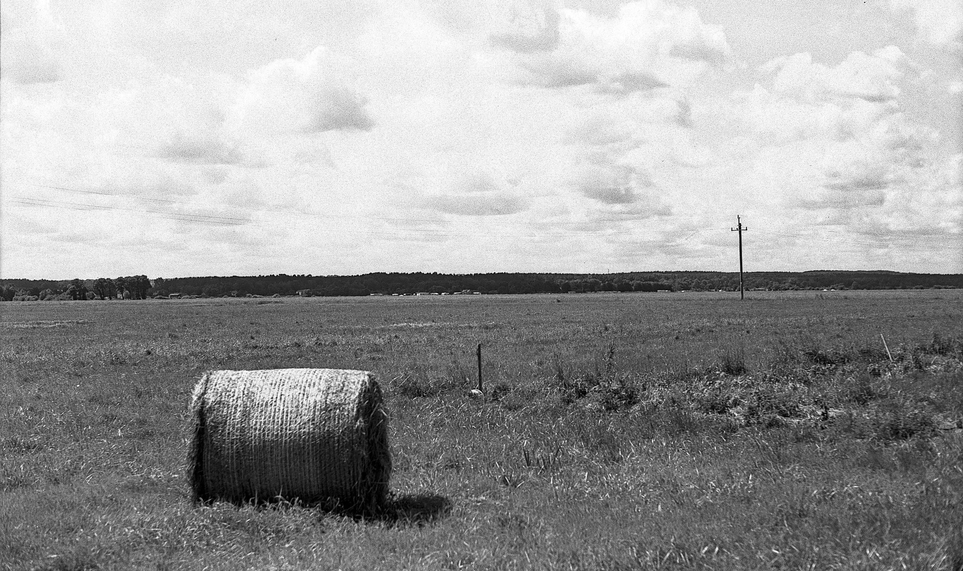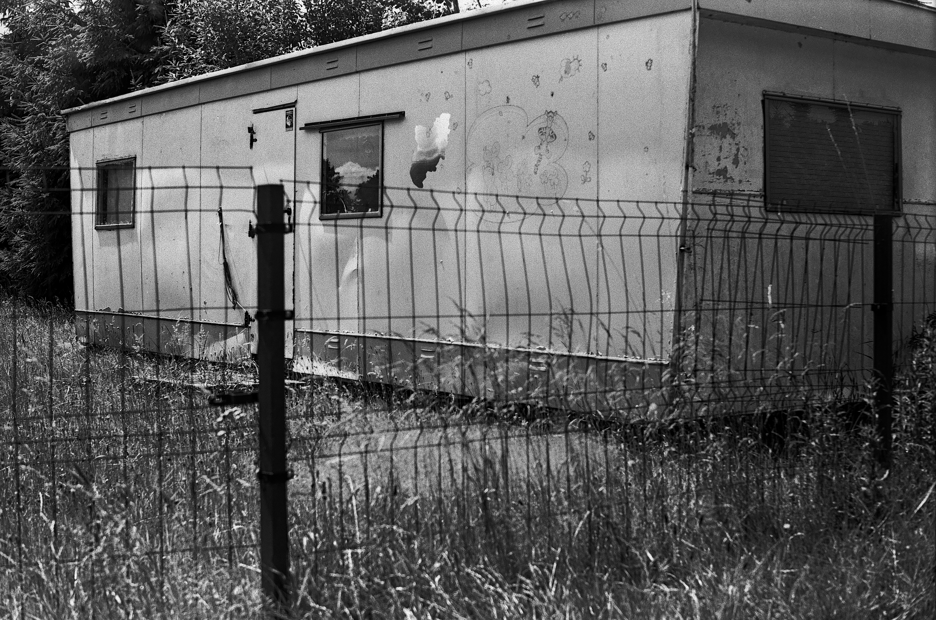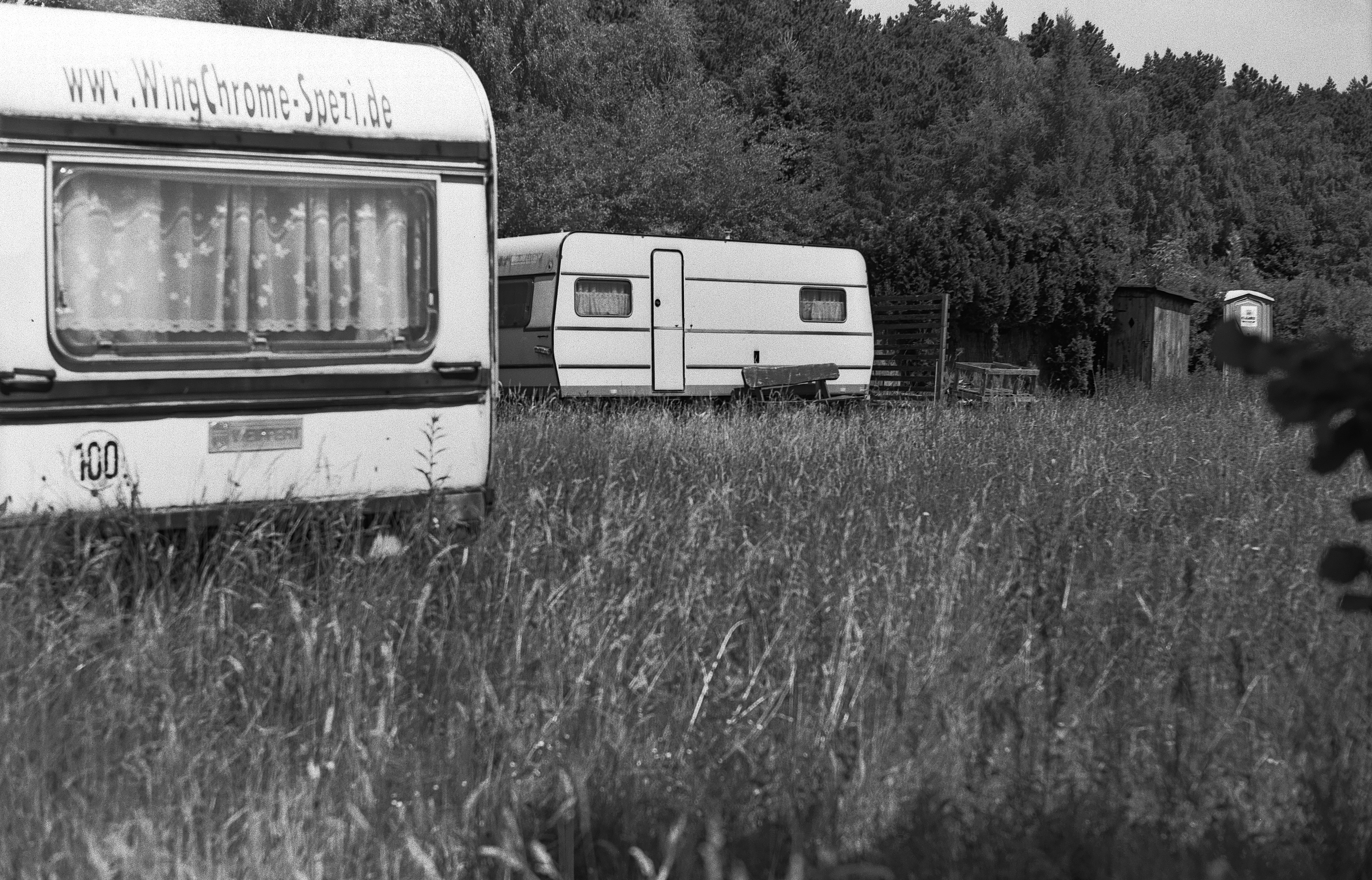 The soothing fields are broken up by empty camping trailers waiting for their owners.